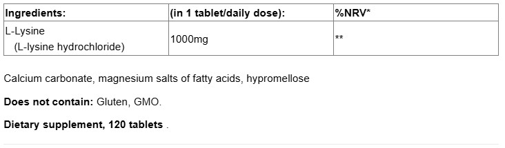 NUTRICOST L-Lysine 1000 mg / 120 Tabs