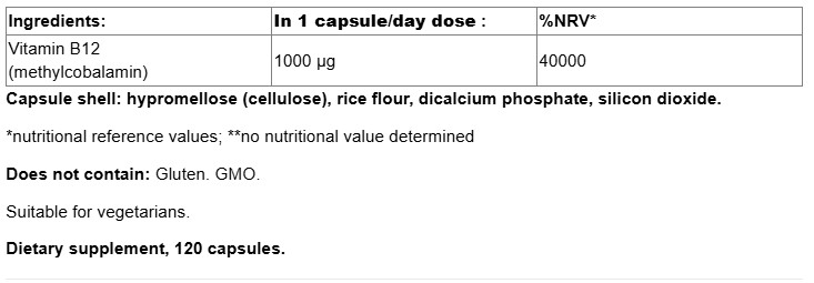 Vitamin B12 1000 mcg / 120 Caps