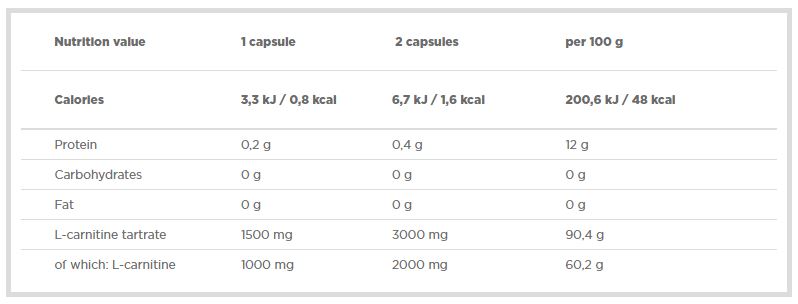 Συστατικά: Τρυγική καρνιτίνη, ζελατίνη, στεατικό μαγνήσιο.