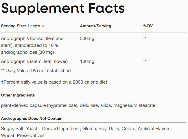 Το Andrographis Standardized 60 Vcaps της NATURES WAY είναι μια εξαιρετικά συμπυκνωμένη φόρμουλα με εκχυλίσματα του andrografis βοτανού. Τα εκχυλίσματα αυτού του βοτάνου έχουν πολλές ευεργετικές επιδράσεις στην υγεία του ανθρώπινου σώματος. Έχει δειχθεί ότι τα εκχυλίσματα του φυτού είναι φυσικά αντιβιοτικά που σκοτώνουν πολλά ανεπιθύμητα βακτηρίδια και άλλους μικροοργανισμούς. Επίσης ενεργεί ως αντι ιικό και ως εκ τούτου συνιστάται ιδιαίτερα η πρόσληψη του ιδίως κατά τους ψυχρότερους μήνες του έτους, καθώς είναι πολύ αποτελεσματικό στην αντιμετώπιση του κρυολογήματος και της γρίπης. Αυτό το βότανο ανακουφίζει επιτυχώς πολλά από τα δυσάρεστα συμπτώματα του κρυολογήματος και ασθένειες του ανώτερου αναπνευστικού συστήματος.