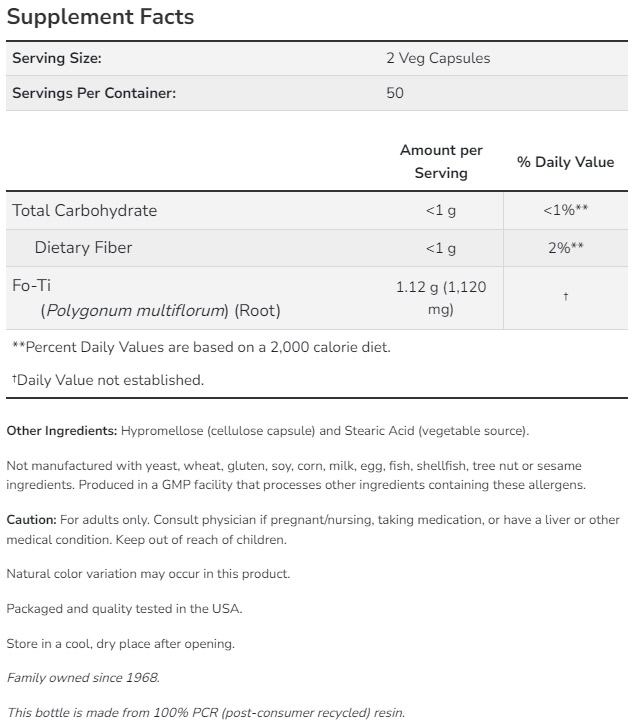 Το Fo Ti (Polygonum multiflorum), επίσης γνωστό ως Ho Shou Wu, είναι ένα πολυετές φυτό που προέρχεται από την Κίνα. Πρόκειται για ένα δημοφιλές φυτό που χρησιμοποιείται ευρέως στα παραδοσιακά κινέζικα φυτικά συστήματα. Σήμερα το Fo Ti είναι γνωστό για τις πολλές ευεργετικές επιδράσεις που έχει στην υγεία του ανθρώπου. Το Ho Shou Wu έχει αναζωογονητικές και καταπραϋντικές ιδιότητες, καθιστώντας το ένα μοναδικό βότανο. Περιέχει συστατικά σιδήρου τα οποία έχουν ισχυρές αντιοξειδωτικές ιδιότητες και επίσης διεγείρει το ήπαρ και τα νεφρά.