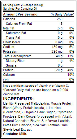 Το DYMATIZE Pursuit Rx Recovery Blend περιέχει την αμινοξική λευκίνη που αυξάνει την αντοχή και εξαλείφει την απώλεια μυϊκής μάζας που προκύπτει από προπόνηση υψηλής έντασης. Επιπλέον, η λευκίνη μειώνει τα επίπεδα χοληστερόλης, ελέγχει την αρτηριακή πίεση και αυξάνει την αερόβια ικανότητα.