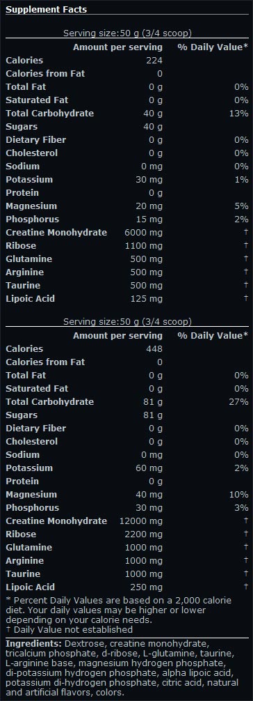 •  Περιέχει μία οσχυρή δόση κρεατίνης και ριβόζης