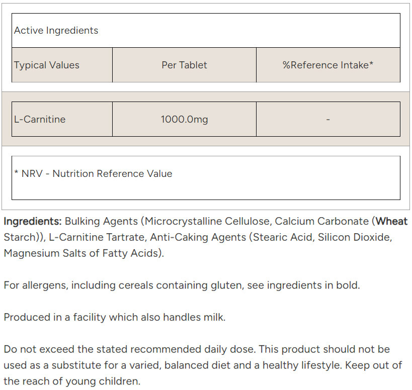 MYPROTEIN, περιέχει μόνο τα πιο αγνά υλικά, χωρίς πρόσθετα, επίσης προσφέρει μια καλύτερη απορρόφηση και καλύτερα αποτελέσματα. Είναι μια απαραίτητη θρεπτική ουσία που επιτυγχάνει δυο σημαντικές λειτουργίες, την μεταφορά της μακράς αλυσίδας των λιπαρών οξέων στα μιτοχόνδρια, όπου μεταβολίζονται και κατά συνέπια την παραγωγή βιο-ενέργειας, ιδίως στο καρδιακό συστήματος και τους σκελετικούς μύες. Η