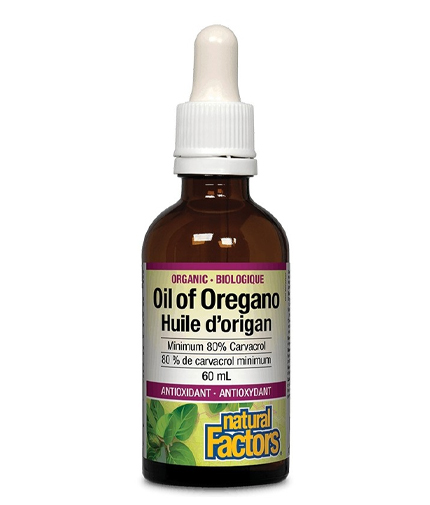Το βιολογικό λάδι ρίγανης Natural Factors είναι μεσογειακή ρίγανη άγριας κατασκευής, που συλλέγεται στο χέρι από το φυτό Origanum vulgare και διατίθεται τόσο σε υγρή όσο και σε βολική μορφή μαλακής γέλης. Το λάδι ρίγανης είναι εγγυημένο ότι περιέχει τουλάχιστον 80% καρβακρόλη.